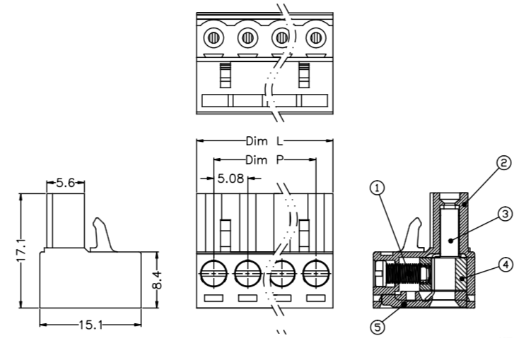 Female pluggable terminal block connector 2 ~ 24 poles , 5.08mm pitch