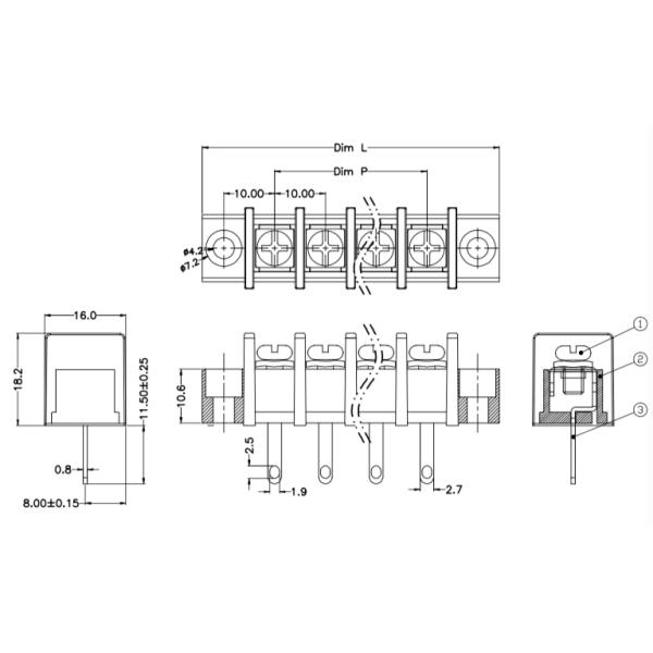 • Barrier strip is designed with a simple and rigid structure that is suitable for higher current and voltage applications.